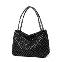 Bolso bandolera Retro de gran capacidad para mujer, nuevo estilo, Color sólido, cierre de cremallera, forro de poliéster, cadenas Vintage