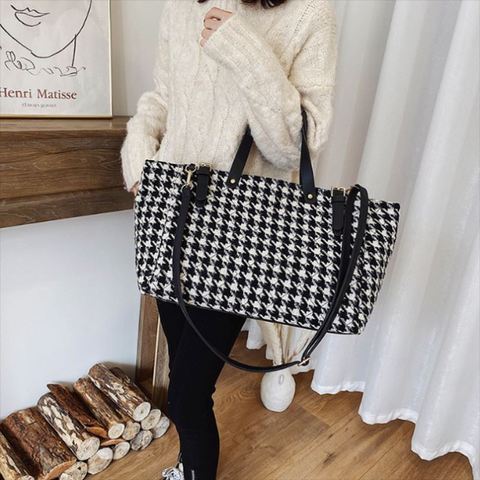 Bolso de mano a cuadros de gran capacidad, bolso de mano tejido de un solo hombro Retro para Otoño e Invierno para mujer, trabajo, vida diaria, superventas